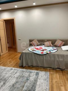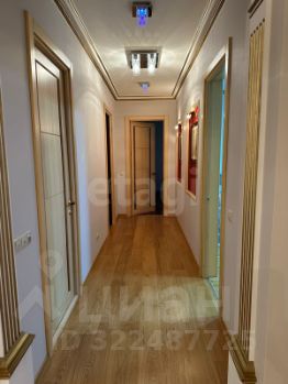 Отделка выполнена с применением качественных материалов — паркетная доска в жилых помещениях, керамогранит в санузлах и прихожей, межкомнатные двери изготовлены на заказ.