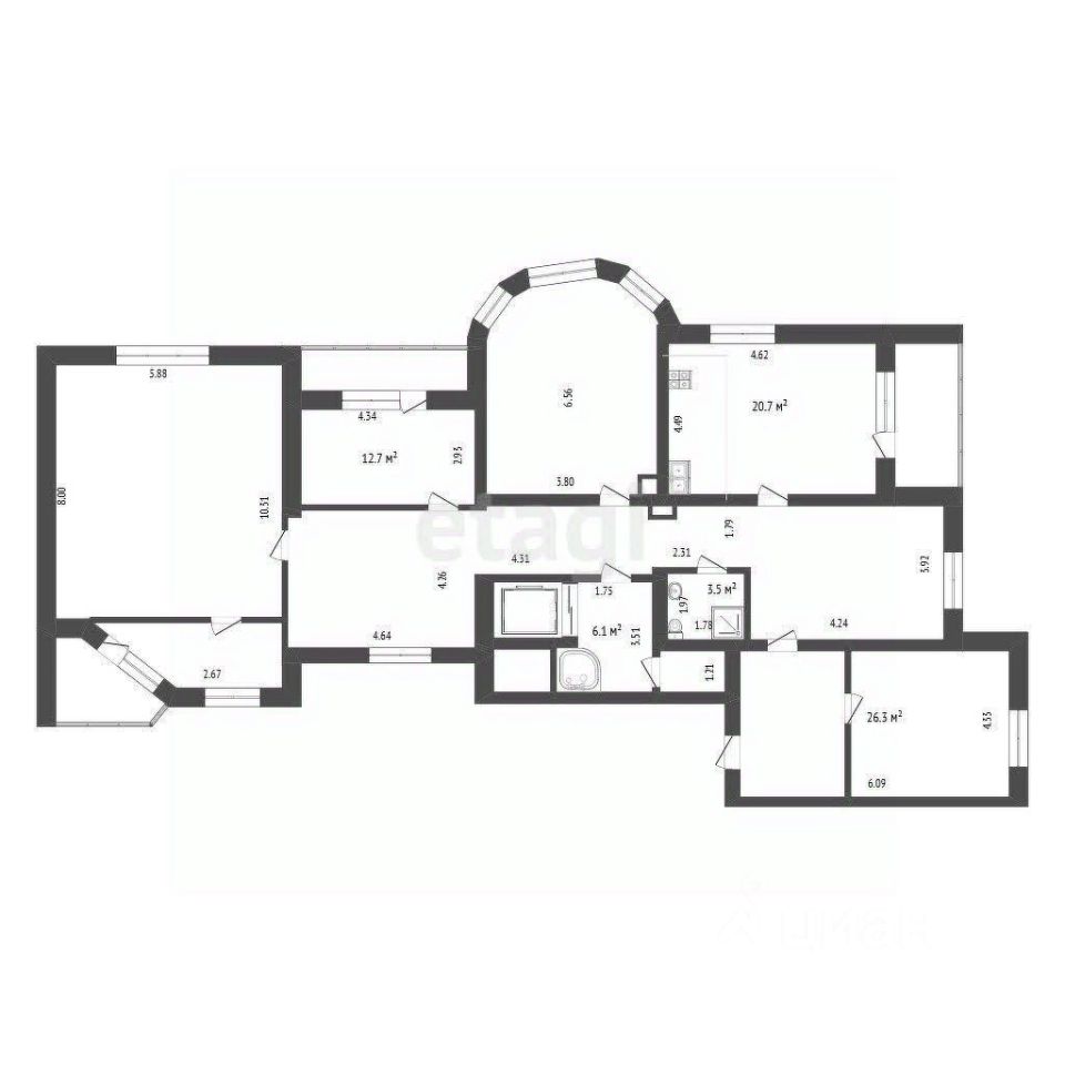 Просторная пятикомнатная квартира в элитном комплексе Исторического центра Тюмени (расположена на последнем этаже 9-этажного дома)