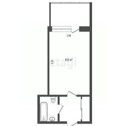 Внутри имеется лоджия, объединенная с комнатой, что создает ощущение простора. Окна ориентированы во двор.
