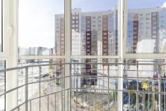 Двор с детской, спортивной площадками. Одно из окон спальной комнаты выходит на пешеходную аллею.