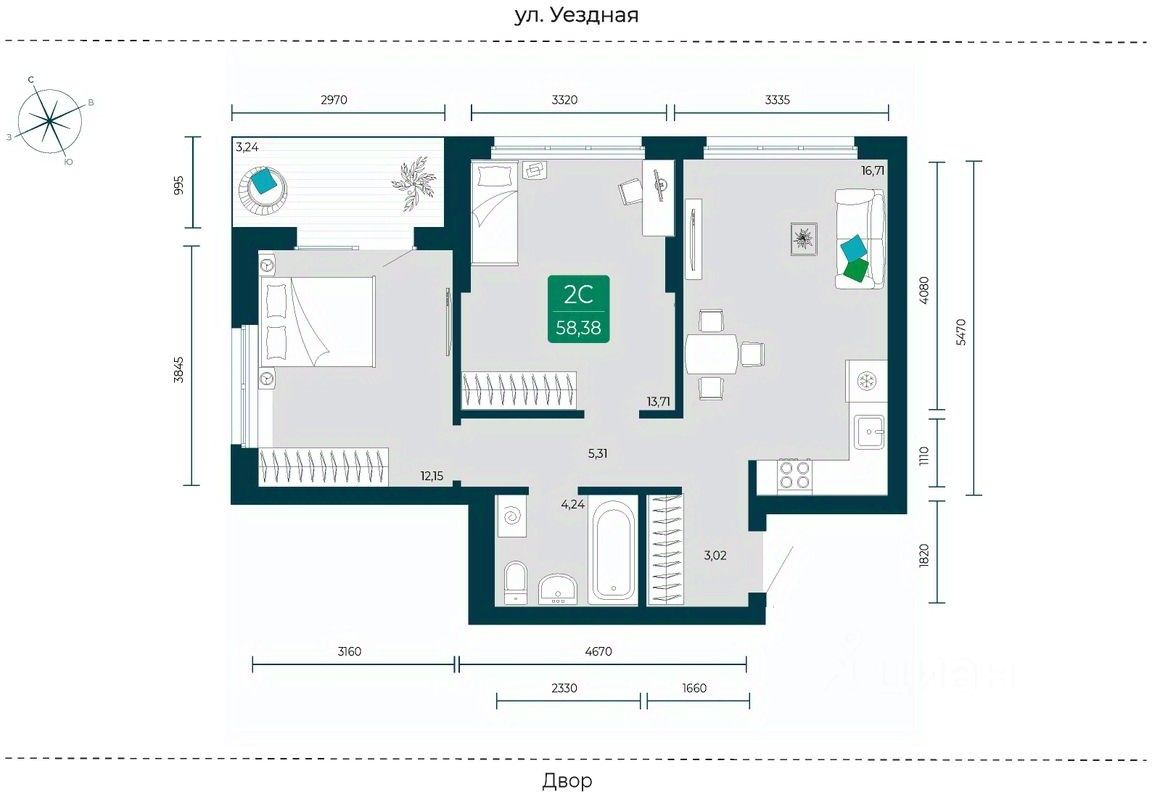 Двухкомнатная квартира от застройщика с предчистовой отделкой в ЖК "Уездные кварталы" на 8 этаже. Общая площадь: 58.38 кв.м., жилая: 25.96 кв.м., площадь просторной кухни-столовой: 16.7 кв.м. Угловая квартира, очень светлая, естественная вентиляция при открытии окон. В квартире одна лоджия, один совмещенный санузел. Высота потолков 2.7 м.
