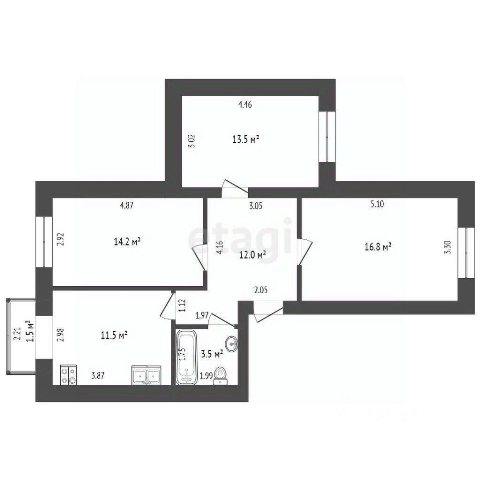 Балкон с витражным остеклением, соединенный с просторной кухней, станет вашим любимым местом для утреннего кофе. Санузел совмещенный. Высота потолков 2,7м.