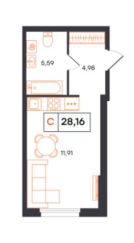 Продаётся студия в строящемся доме (Корпус 4Б (Полевая, д. 117, корпус 13)), срок сдачи: IV-кв. 2026, общей площадью 28.16 кв.м., на 1 этаже. Новый жилой комплекс "Фатера" от Специализированного застройщика "Рубин" расположен по адресу: г. Тюмень, по ул. Полевая.