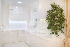 В кухне гостинной кухонный гарнитур из дорогостоящего материала в качественном исполнении с установленной каменной столешницей. Встроенная немецкая бытовая техника. На полу во всей квартире бесшовно выложен пол из белого кварц-винила, что позволяет сохранять комфортную температуру пола и при этом выдерживать твёрдую и ровную структуру пола. В каждой комнате наклеены качественные итальянские , плотные обои. Потолок натяжной во всей квартире . В гостиной оборудовано четыре