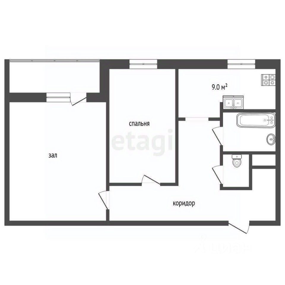 Планировка: 1 изолированная спальня, кухня + просторный зал с выходом на балкон