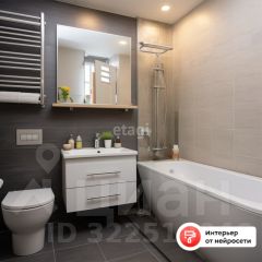 Санузел совмещен и достаточно просторный (5 кв.м), оборудован датчиками протечки воды, плиткой и кафелем, а также мебелью для ванной.