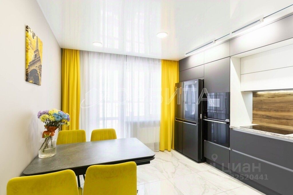 ремонт по дизайн-проекту. Просторная кухня-гостиная, качественный гарнитур с современной бытовой техникой. Два балкона, один из которых - панорамный.