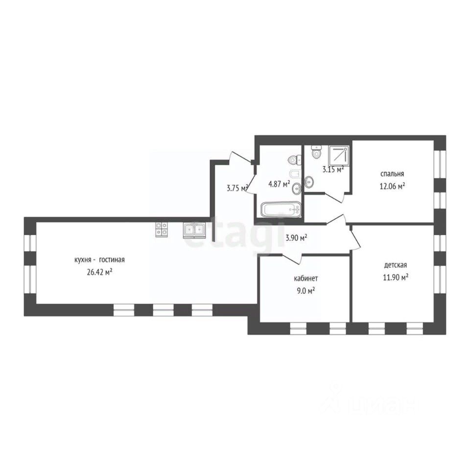 Отличная планировка обеспечивает комфортное проживание: две спальни, включая мастер спальню, большая кухня-гостиная, из третьей комнаты можно сделать гардеробную или кабинет.