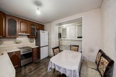 В квартире остаются все необходимые элементы для комфортного проживания: стильный кухонный гарнитур, холодильник, обеденный стол и стулья, а также плита и вместительный шкаф-купе. Шторы также остаются, добавляя завершенности интерьеру. Всё остальное можно обсудить индивидуально.