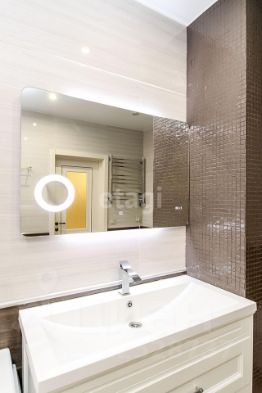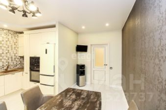 Светлая 2-комнатная квартира с дизайнерским ремонтом: натяжные потолки, встроенное освещение, на полу уложен ламинат и плитка.