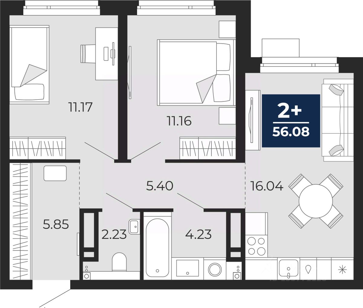 Продается двухкомнатная квартира с предчистовой отделкой в ЖК "Прео" на 14 этаже. Общая площадь: 56.08 кв.м., жилая: 22.33 кв.м., площадь просторной кухни-столовой: 16.04 кв.м. Комнаты изолированные, все окна выходят на одну сторону. В квартире один раздельный санузел. Высота потолков 2.7 м.