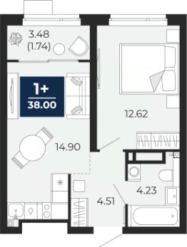 Однокомнатная квартира с предчистовой отделкой в ЖК "Прео" на 20 этаже. Общая площадь: 38 кв.м., жилая: 12.62 кв.м., площадь просторной кухни-столовой: 14.9 кв.м. Все окна выходят на одну сторону. В квартире одна лоджия, один совмещенный санузел. Высота потолков 2.7 м.