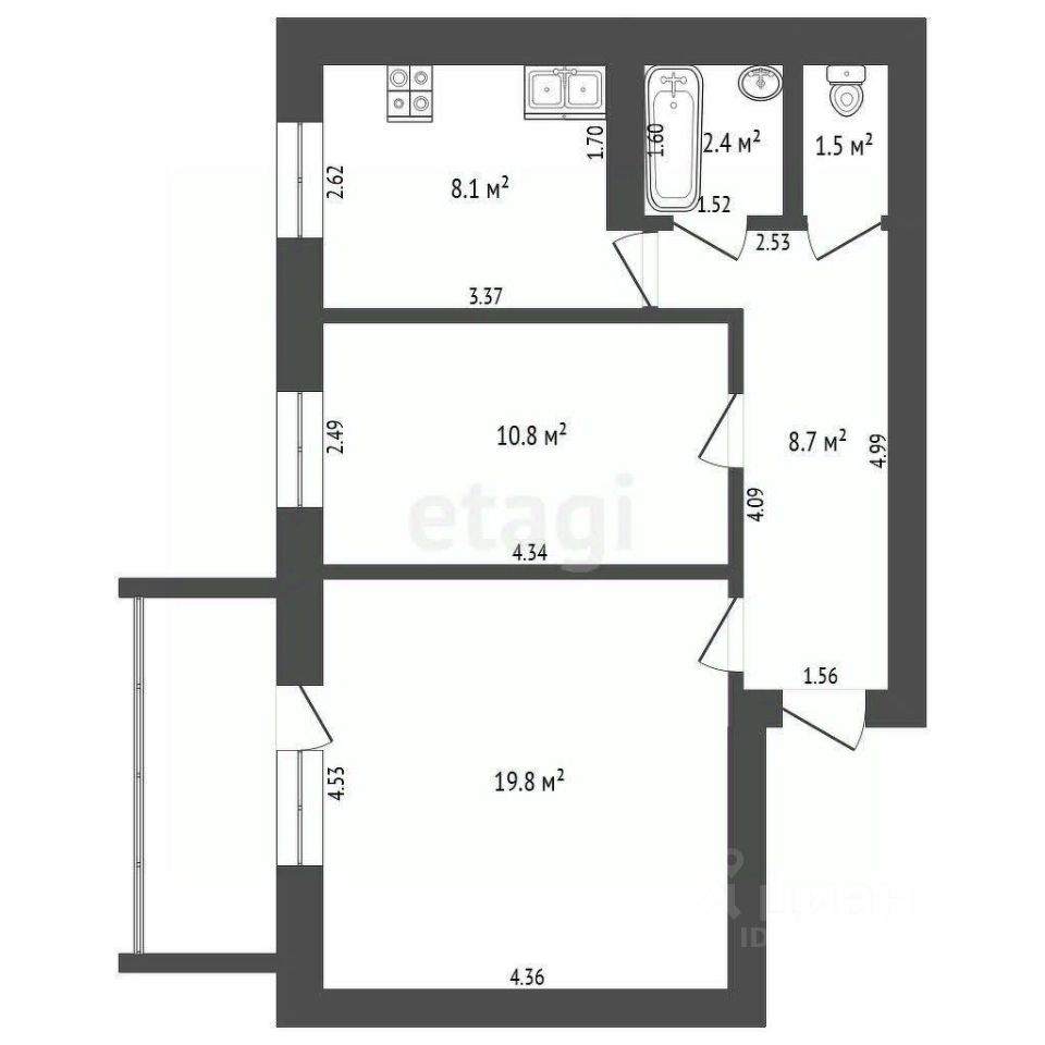 Предлагается к продаже уютная 2-комнатная квартира, расположенная по адресу: Центральная улица, дом 6, квартира 17, п. Кировский, Исетский район.