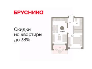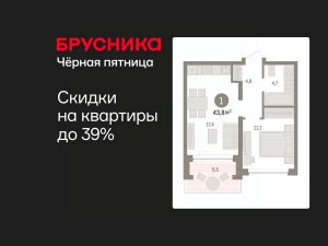 1-комн. квартира с предчистовой отделкой в ЖК "Дом у озера" на 2 этаже. Общая площадь: 43.76 кв.м., жилая: 11.2 кв.м., площадь просторной кухни-гостиной: 17.4 кв.м. Все окна выходят на одну сторону. В квартире одна лоджия, один совмещенный санузел. Высота потолков 2.7 м.