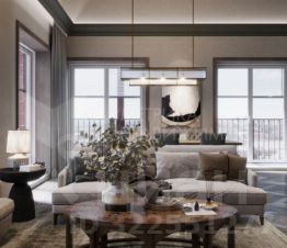 • Авторский индустриальный стиль: сочетание бетона, кирпича и металла.