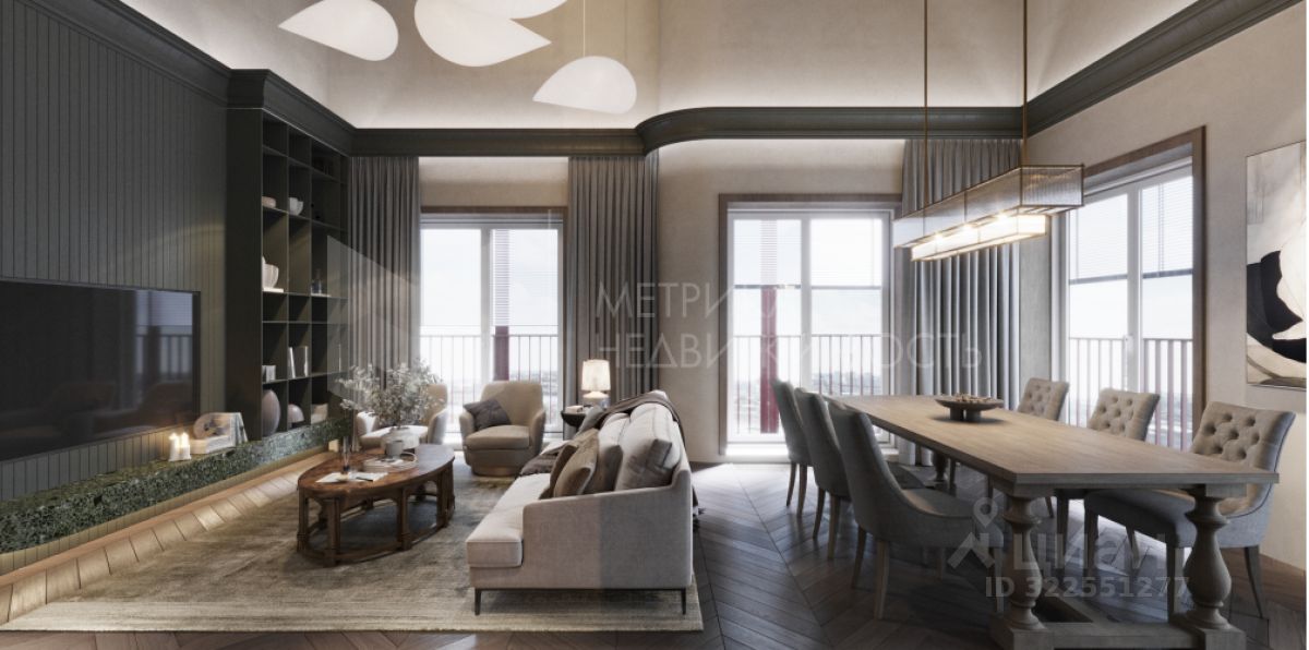 Пентхаус 177,1 м² с девятью окнами, выходящими на юг и открывающими панорамный вид на город.