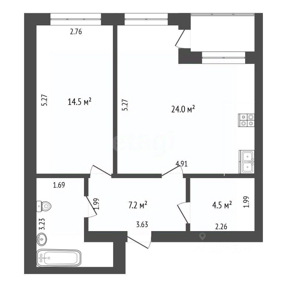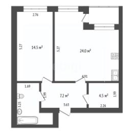 Продается квартира формата 1+ общей площадью 54.7 кв метров в ЖК Смородина!