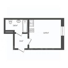 Просторная квартира-студия с качественным ремонтом и меблировкой расположена в престижном районе в пяти минутах от исторического центра Тюмени.