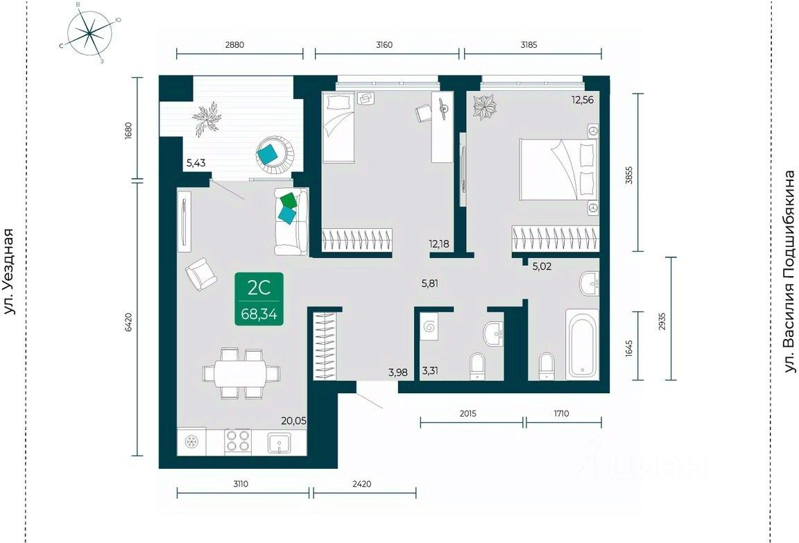 Двухкомнатная квартира с предчистовой отделкой в ЖК "Уездные кварталы" на 10 этаже. Общая площадь: 68.34 кв.м., жилая: 24.74 кв.м., площадь просторной кухни-столовой: 20.05 кв.м. Комнаты изолированные, все окна выходят на одну сторону. В квартире одна лоджия, один совмещенный и один раздельный санузел. Высота потолков 2.7 м.