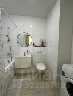 Санузел совмещенный, отделка- керамическая плитка. Установлена стиральная машина, сантехника: ванная, инсталляция, подвесная тумба с раковиной, зеркало.