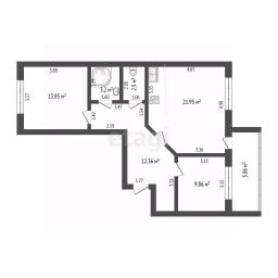 Планировка квартиры - распашонка. Окна выходят на две стороны, просторные комнаты + широкая лоджия.
