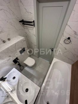 Второй санузел также оснащён современным безободковым унитазом подвесной системы, который экономит пространство и обеспечивает гигиеничность. Предусмотрен слив воды двумя режимами: для экономии и полного смыва. Гигиенический душ, раковина, дизайнерское зеркало и место для подключения стиральной машины делают санузел удобным и стильным. Два уровня подсветки и регулируемая тёплая стена создают приятную атмосферу.