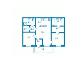 Квартира площадью 56 кв. м. расположена на первом этаже, имеет отдельный вход и собственную террасу. У квартиры нет смежных стен с соседями высотного жилого дома, что обеспечивает приватность.