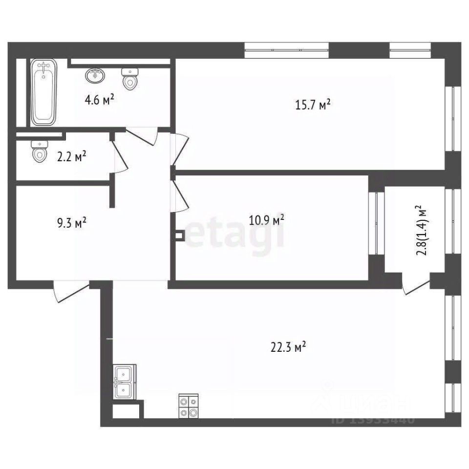 Удобная планировка 2 просторные комнаты + функциональные зоны + просторная кухня-гостиная
