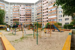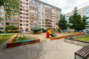 Квартира расположена в хорошем спальном микрорайоне. В двух шагах находятся школа и детский сад. Рядом автобусная остановка и две поликлиники. За домом обустроенный сквер — идеальное место для прогулок с семьёй.