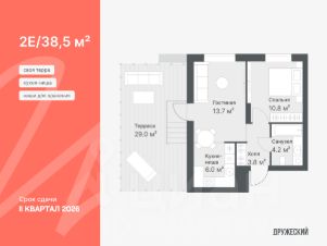 Европейская планировка: просторная кухня-гостиная с обособленной зоной для готовки. В спальне есть ниша для шкафа в углублении стены. В прихожей тоже есть ниша для шкафа. Бонус — выход на террасу. Можете разместить там летнюю мебель и шезлонги, чтобы отдыхать на свежем воздухе, когда тепло.