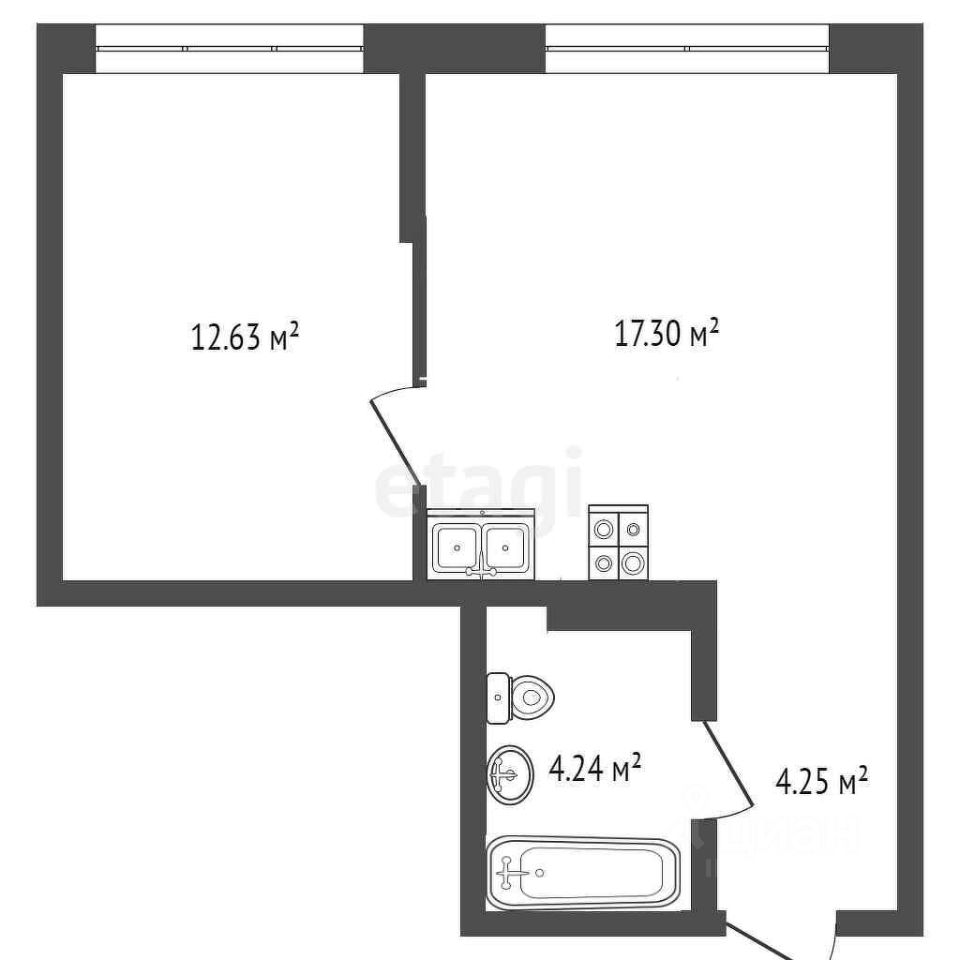 Евродвушка 1+ с кухней 17м² в новом ЖК "Авторский"