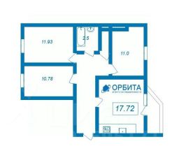 Квартира небольшая, но удачно спланирована. Три отдельные комнаты (12,13+10,74+17,50)+кухня-гостиная.