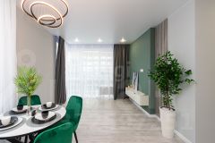 Остается: кухонный гарнитур со встроенной вытяжкой, варочной поверхностью, посудомоечная машина, духовой шкаф, встроенная микроволновка, кондиционер, диван, стол со стульями, шкаф-купе в прихожей.