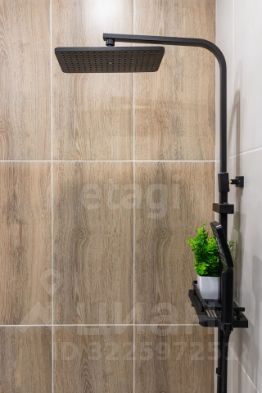В ванной комнате: ванна установлена, душ тропический. Раковина с подвесной тумбой. Зеркало с подсветкой. Шкафчик.