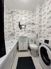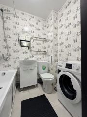 Санузел совмещенный, оборудованный всем необходимым, полноценная ванна, раковина, стиральная машина.