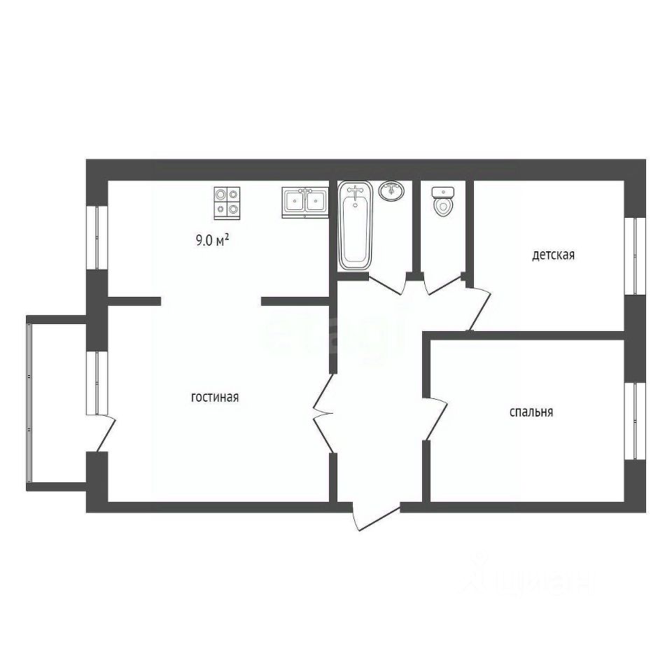 Удобная планировка включает большую гостиную, кухню, изолированную детскую и спальню.