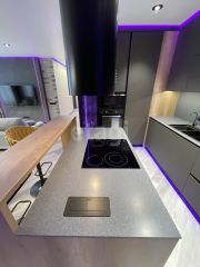 • Кухонный гарнитур с островом, барной стойкой и каменной столешницей