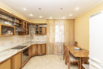 В квартире остается кухня со встроенной бытовой техникой (новая посудомоечная машина, холодильник, плита, вытяжка, стол, стулья).