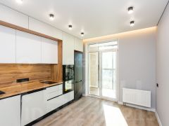 Напольное покрытие SPC ламинат, в санузлах испанская плитка. Натяжной потолок со встроенным освещением и скрытыми гардинами. Межкомнатные двери Волховец, кухонный гарнитур и встроенная мебель (посудомойка, вытяжка, духовка и плита, а также холодильник). В квартире сделано все для комфортной жизни.