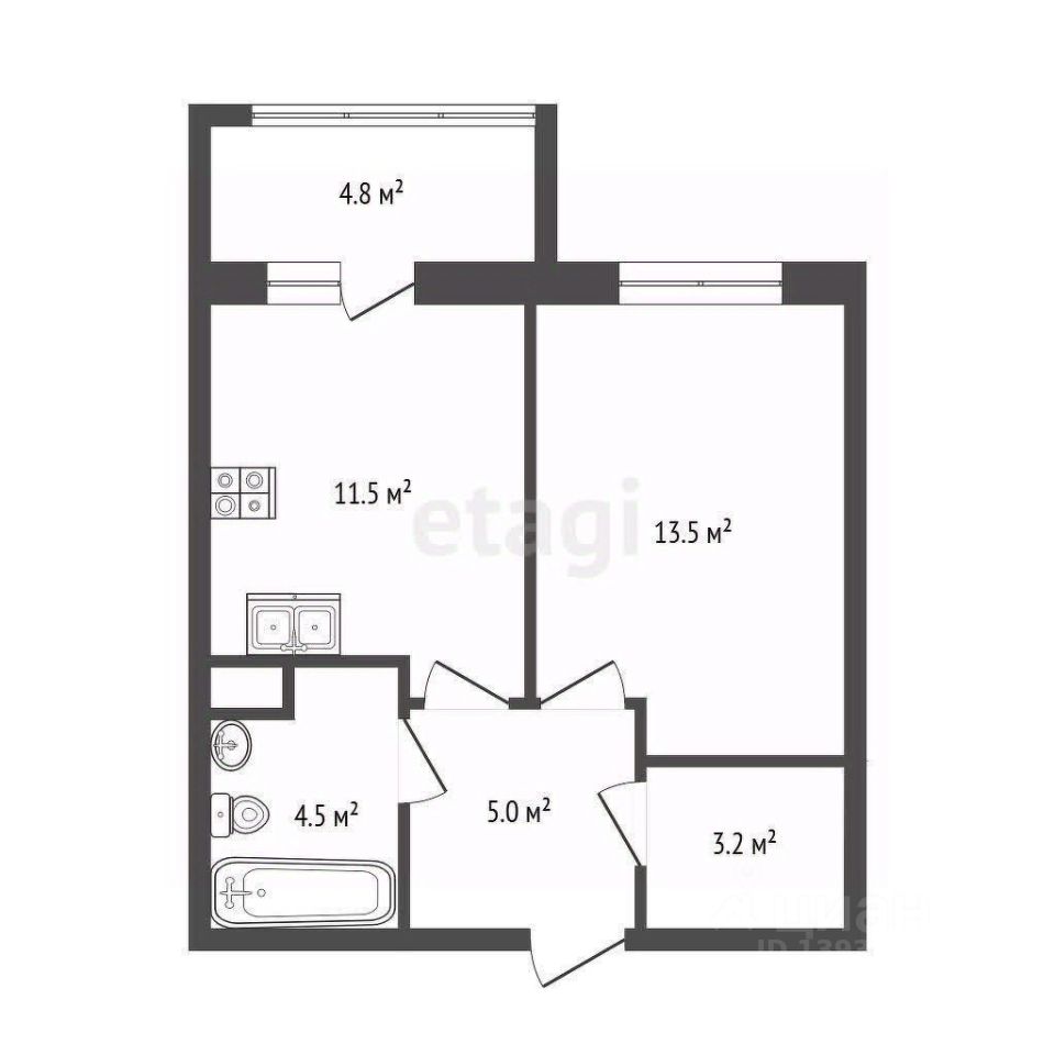 Квартира площадью 39 м2 с гардеробной. Планировка: кухня с лоджией и спальня. Санузел совмещенный. Ремонт: Улучшенная-черновая отделка, электрика разведена, стены отштукатурены, стяжка пола сделана.