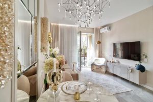 Ремонт сделан в оттенках стильный беж/тауп . Также продуман технический дизайн , установлены датчики протечки , освещение и техника включается по голосу и в приложении .