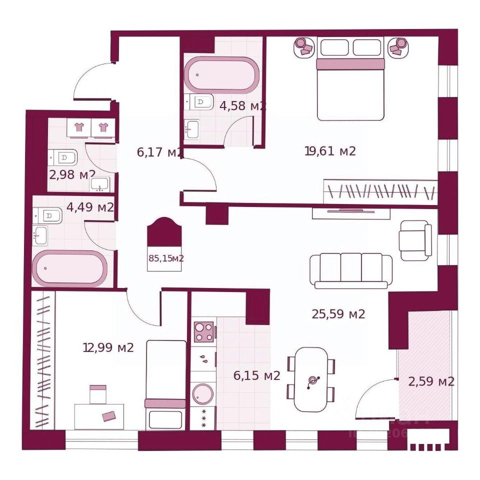 85,15 м²
