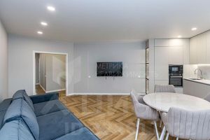 Ремонт квартиры по дизайн-проекту выполнен в светлых тонах. Вся мебель и техника новые и подобраны в едином стиле. Установлены кондиционеры, качественные двери и освещение.