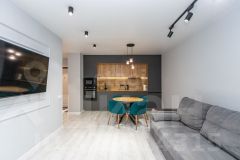 Квартира площадью 59 м² в жилом комплексе "Андерсен Парк" в районе Тюменской слободы предлагает комфортное проживание для семьи или инвестиционную привлекательность. Планировка 2+ включает две спальни, просторную кухню-гостиную, прихожую с гардеробной зоной и отдельную постирочную либо гардеробную, которую можно использовать как дополнительное хранилище. Кухня оборудована современным гарнитуром с встроенной техникой: варочной панелью, духовым шкафом, вытяжкой, холодильником и микроволновой печью, а также посудомоечной машиной. Обеденная зона и удобный диван делают пространство функциональным. Одна из спален имеет выход на французский балкон, добавляя естественного света и возможности для небольшой зоны отдыха. Санузел совмещенный, с акриловой ванной, навесной тумбой с подсветкой и инсталляцией. В квартире выполнен качественный ремонт с использованием долговечных материалов в актуальной цветовой гамме. Жилой комплекс отличается развитой инфраструктурой: в шаговой доступности магазины, кафе, детские сады и школы, а хорошая транспортная развязка обеспечивает быстрый выезд в центр города. Закрытая территория с благоустроенным двором, детскими площадками и зонами отдыха повышает уровень безопасности и комфорта. Объект подходит как для постоянного проживания, так и для сдачи в аренду благодаря удачному расположению и продуманной планировке.