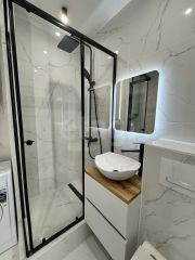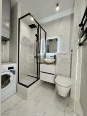Есть подогрев пола в сан.узле, коридоре и на балконе. В туалете принудительная вытяжка, подсветка, бойлер, розетка для фена.