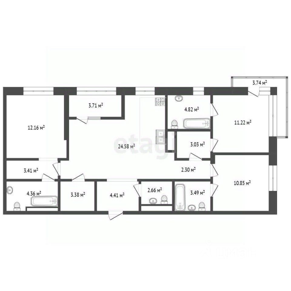 Объект отличается продуманной планировкой, которая встречается только в этом ЖК: просторная кухня-гостиная 24,5 кв. м, три изолированные мастер-спальни с индивидуальными санузлами и гардеробными, балкон и лоджия. Высота потолков 3 метра создает ощущение простора, а панорамные окна обеспечивают обилие естественного света и видовые характеристики. Жилой комплекс выполнен в современном стиле с элементами футуристического дизайна и благоустроенной территорией. Двор с ландшафтным озеленением, зонами отдыха и дизайнерскими беседками предлагает комфортную среду для прогулок и отдыха. В доме предусмотрены сквозные подъезды, безбарьерная среда, места для хранения колясок и спортивного инвентаря.