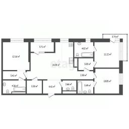 Квартира площадью 95,2 кв. м расположена на 9-м этаже жилого комплекса "В Гагаринском парке" в северо-восточной части Тюмени.