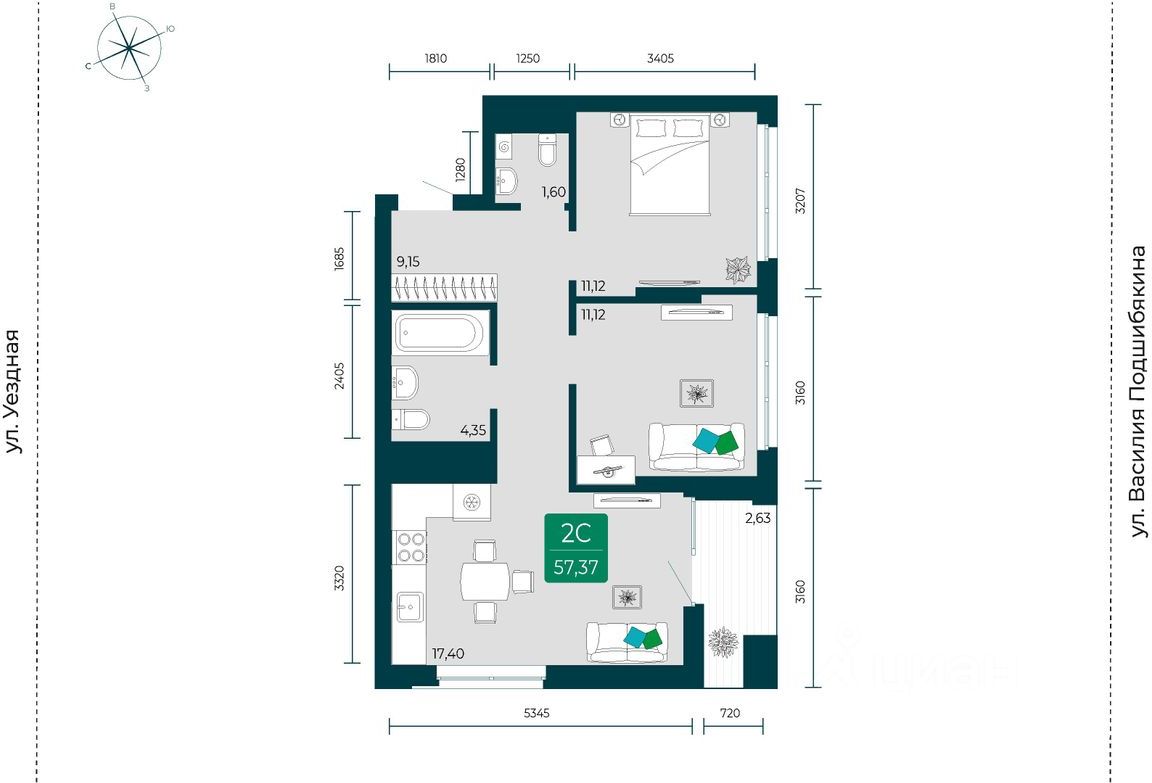 Продается 2-комн. квартира от застройщика с предчистовой отделкой в ЖК "Уездные кварталы" на 4 этаже. Общая площадь: 57.37 кв.м. Высота потолков 2.7 м.