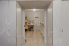 При продаже остаётся мебель (кухонный гарнитур, система хранения в комнате, диван, письменный стол) и техника (стиральная машина, холодильник, электрическая плита).