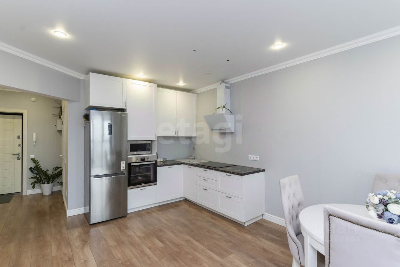 Уважаемые покупатели, продается квартира с современным ремонтом только из качественных материалов. На полу ламинат, натяжные потолки, ванная комната (4м2) в керамограните, сделана отдельная гардеробная комната (4м2) в которой можно хранить все вещи. Удобная планировка квартиры 1+ кухня-гостинная (18м2) и спальня (16м2), просторный холл. Горизонтальная разводка отопления, с регуляторами и счетчиками на отопление. Также в квартире установлена телеметрия, показания счетчиков будут самостоятельно передаваться в УК. Видеодомофон, полностью сан-фаянс так же остаются в данной квартире. Еще остается кухонный гарнитур с встроенной электротехникой.